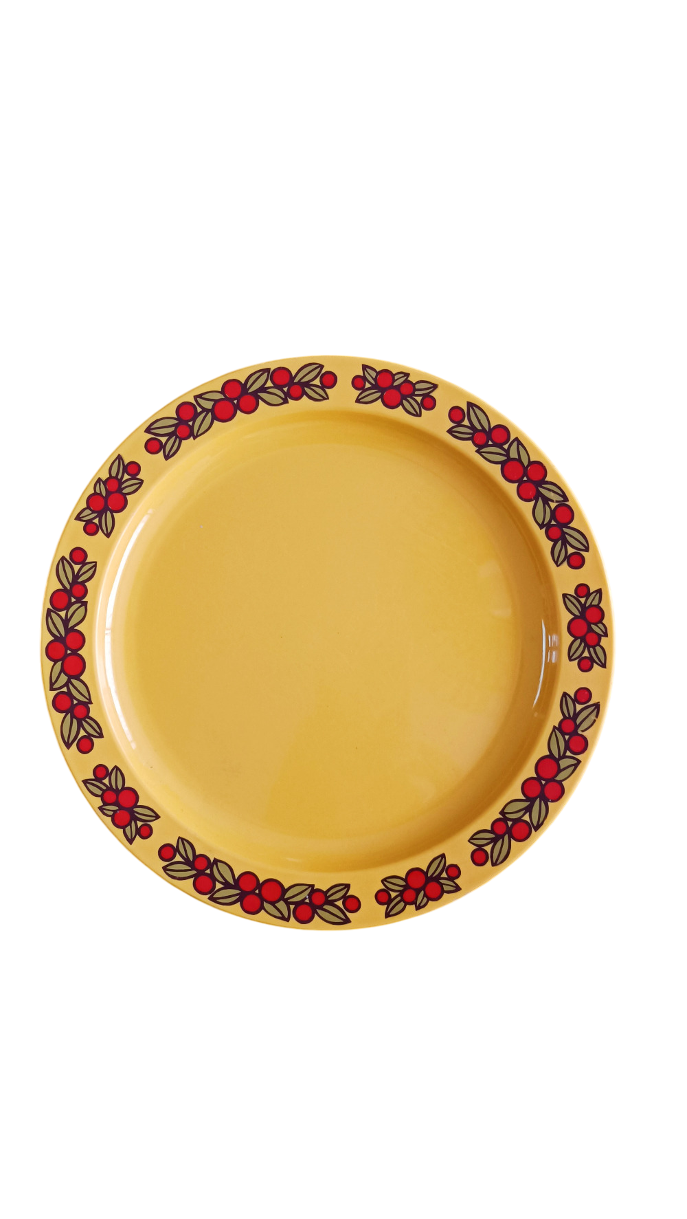 Plat à tarte sur pied, en barbotine décor myrtilles