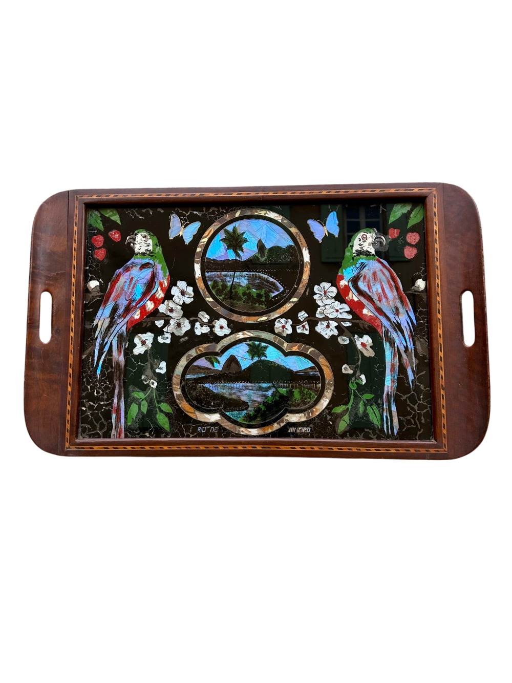 Pot Avon en opaline, bonbonnière, sucrier, décor oiseau