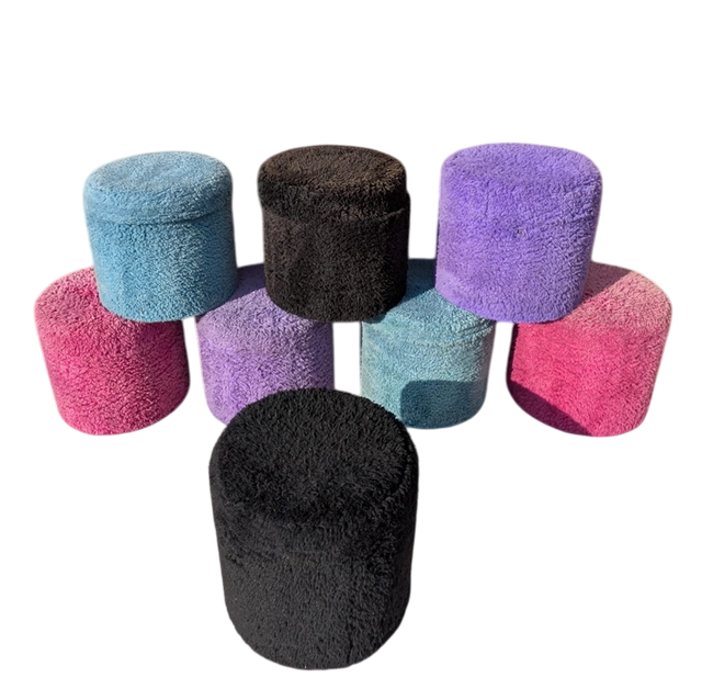 Pouf en fourrure coloré année 70
