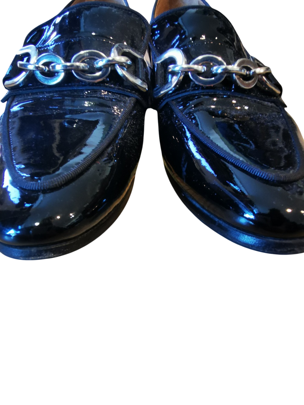 Chaussures en cuir noir avec chaîne décorative